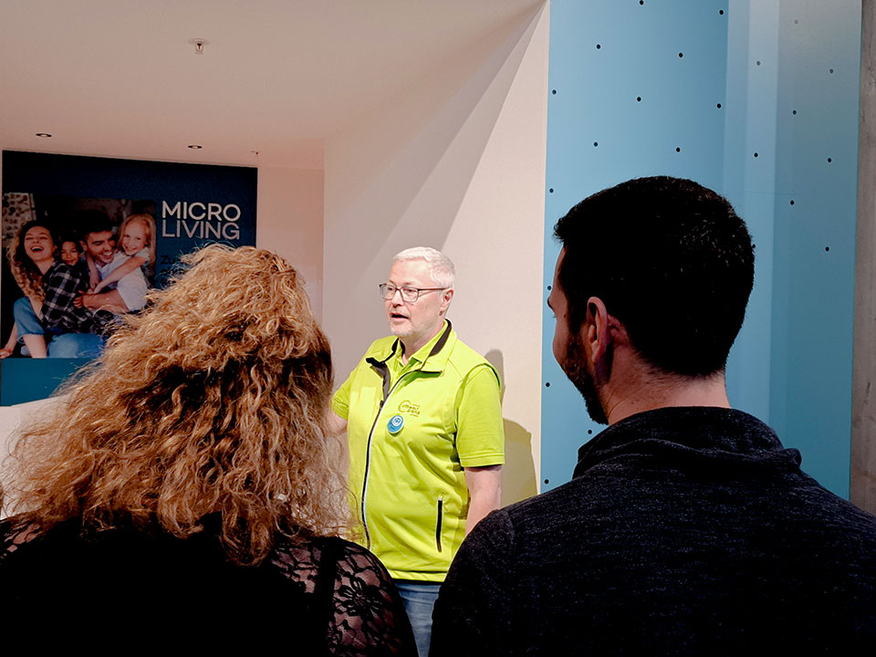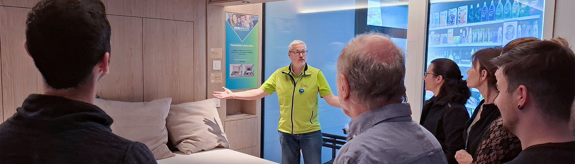 Für Firmen, Vereine und Schulen sind Führungen auf Anfrage buchbar. Das Thema Mikrowohnen bei den beiden Führungen «Nachhaltigkeit im Alltag» und «Bauen und Modernisieren» als Schwerpunkt gewählt werden kann.