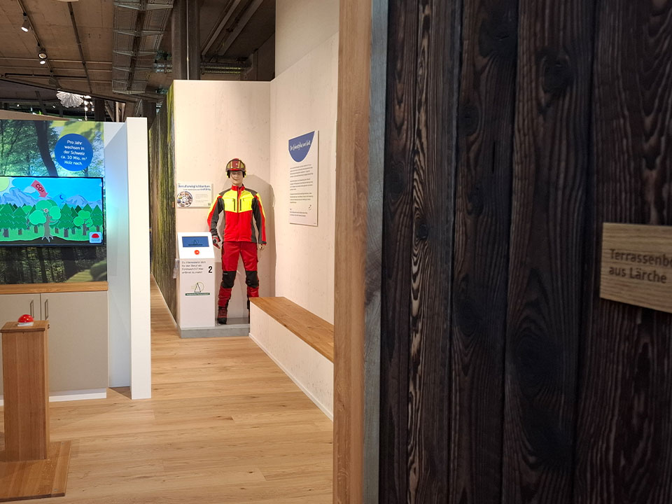 Die Besucher:innen erwartet ein einmaliges Ausstellungserlebnis: Interaktive Stationen, Infotafeln, Monitor-Präsentationen und detailreich gestaltete Ausstellungsbereiche laden dazu ein, das Bauen mit Holz neu zu entdecken. Diese Ausstellung verkörpert gelebte Nachhaltigkeit und die Innovationskraft der Kuratle Group als Anbieter von Gesamtlösungen im Holzbereich.